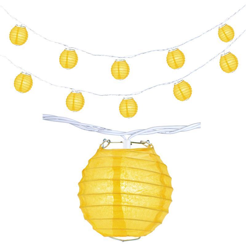 BLOWOUT 10 Socket Yellow Round Paper Lantern Party String Lights (4" Lanterns, Expandable)