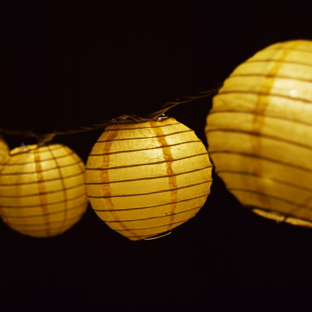 10 Socket Yellow Decorative Round Paper Lantern Party String Lights (4" Lanterns) Video