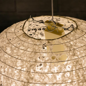 Comes with a clip that hangs on metal part of paper lantern if you do not want to use the flexible cord. Two options for hanging, either clip onto the metal expander, or hang with the flexible wire inside the lantern.