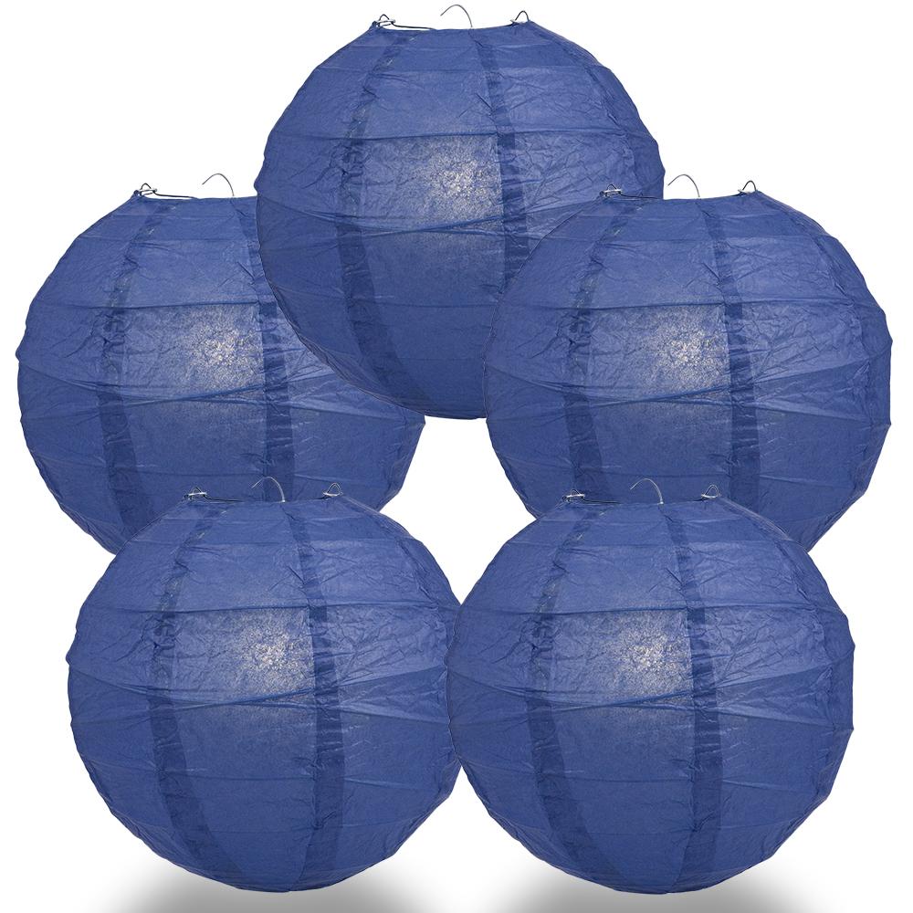 5-Pack 12 Inch Navy Blue Free-Style Ribbing, Hanging Paper Lanterns