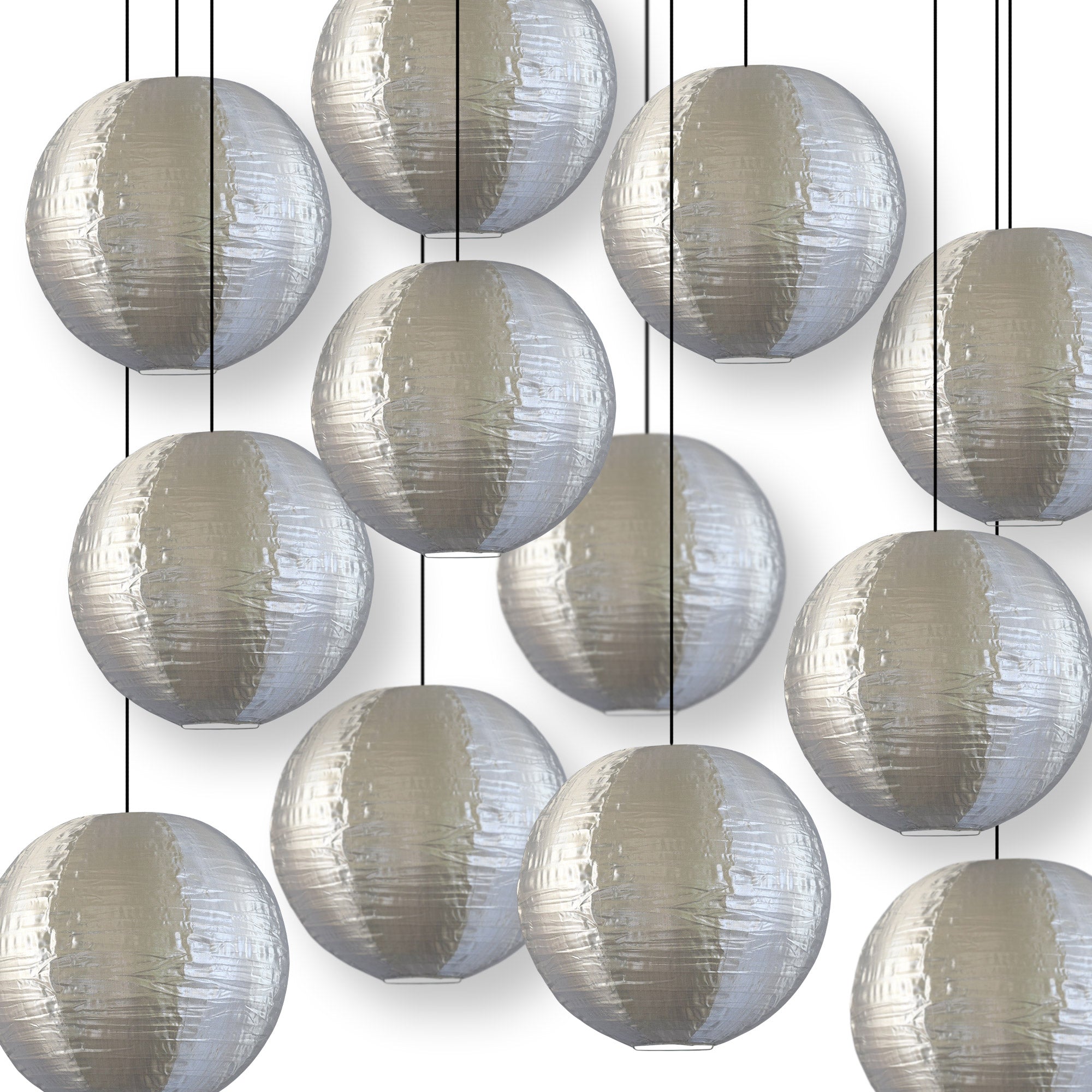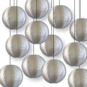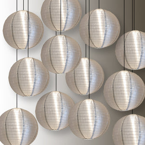 Elevate your party décor with this 12-pack of silver shimmering nylon lanterns. Crafted from durable nylon with stylish parallel ribbing, these lanterns are perfect for creating a cohesive, elegant look at weddings, parties, and special events. Their shimmering finish adds a touch of sophistication, whether used indoors or in dry outdoor settings.