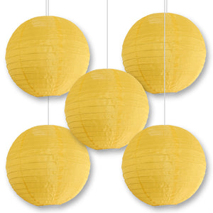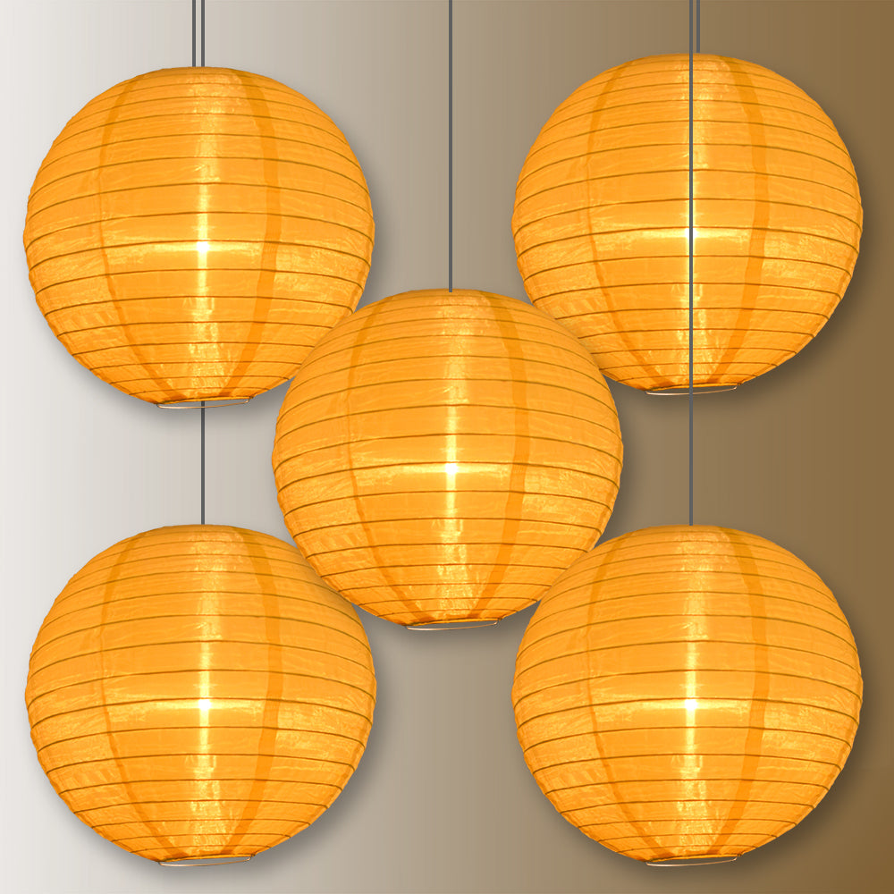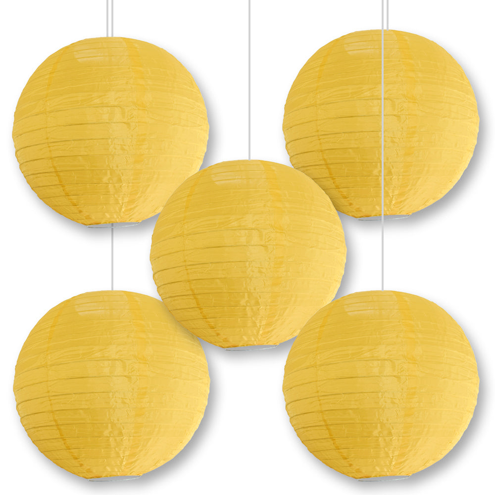 5-PACK 14" Golden Yellow Shimmering Nylon Lantern, Parallel Ribbing, Durable, Hanging
