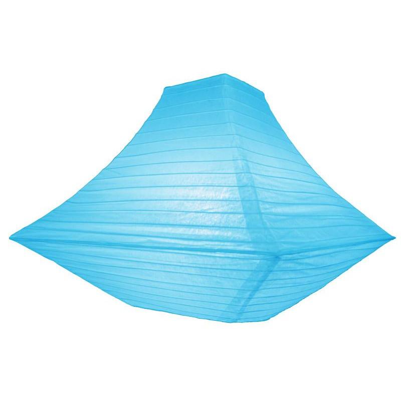 Turquoise blue in color, these beautifully shaped paper lanterns are inspired by traditional shapes found in Asia. Called Pagoda by some, these shaped lanterns are inspired by buildings that were used for ceremonies or made into holy shrines. Why not use these special lanterns for your own ceremonies such as a wedding or even celebrations like birthdays or anniversaries? Each lantern is held open with a wire expander in this unique shape. Dimensions: 14" x 14" x 11 H" (All lanterns sold without lighting, lighting options must be purchased separately)