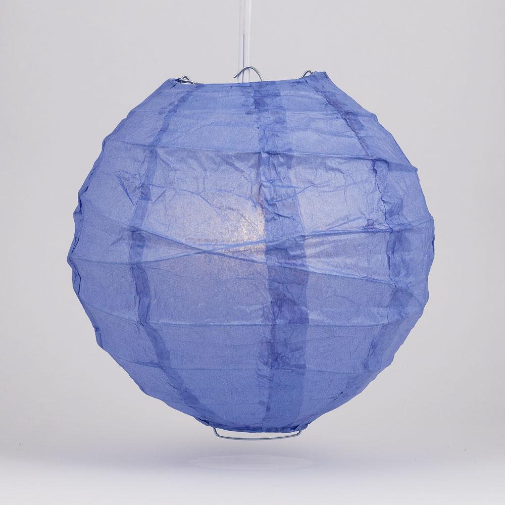 We are reluctant to call these Astra Blue / Very Periwinkle round lanterns "cheap paper lanterns" because their quality and value are outstanding for the price. Our paper lanterns have been designed with the budget shopper in mind. Available in an array of tried and true basic colors, these decorative lanterns feature wire ribbing and a simple C-hook frame expander. Intended for use with cord sets or battery powered LED lights.