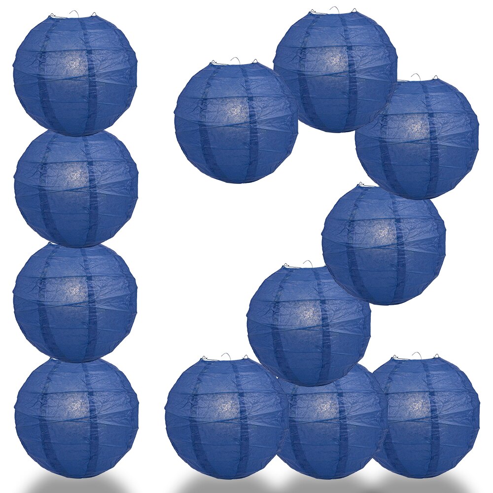 12-Pack 16 Inch Navy Blue Free-Style Ribbing Round Paper Lantern