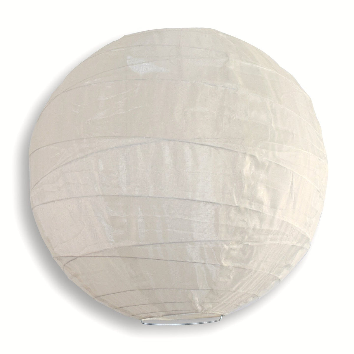 This Beige / Ivory free-style ribbed nylon lantern is durable and long lasting. This lantern has a shimmer to it which regular paper lanterns do not have. This lantern is made with nylon and has free-style metal ribbings.