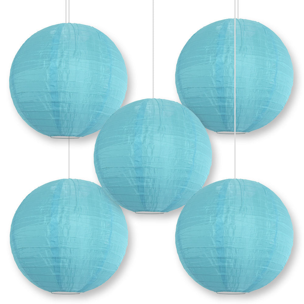 BULK PACK (5) 18 Inch Baby Blue Shimmering Nylon Lantern, Parallel Ribbing, Durable, Hanging