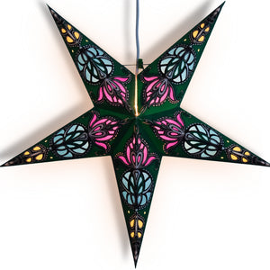 Luna Bazaar's hand-crafted hanging Paper Star Lanterns are beautiful as a home decor accessory or as an outdoor Wedding decoration. These star lantern lamps are high-quality - made from thick paper and punched with a special star design. Available in many colors and patterns, our unique star lanterns have been seen hung on walls and ceilings on TV shows, movies and at concerts. Makes a beautiful display or decoration in any room in the home. Adds a fun touch to any party or event. Pair with one of our Wedding Decorations. These star lantern lamps are high-quality - made from thick paper and punched with a special star design. Available in many colors and patterns, our unique star lanterns have been seen hung on walls and ceilings on TV shows, movies and at concerts. Makes a beautiful display or decoration in any room in the home when paired with one of our lamp cord kits.