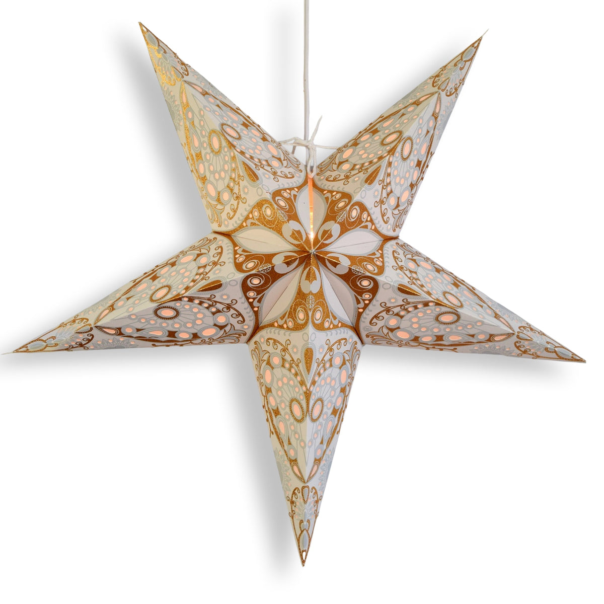Need lighting? We have unique E12 Socket Single and Multi-Lamp Cord Kits that can be used to hang and beautifully illuminate this Paper Star Lantern. |