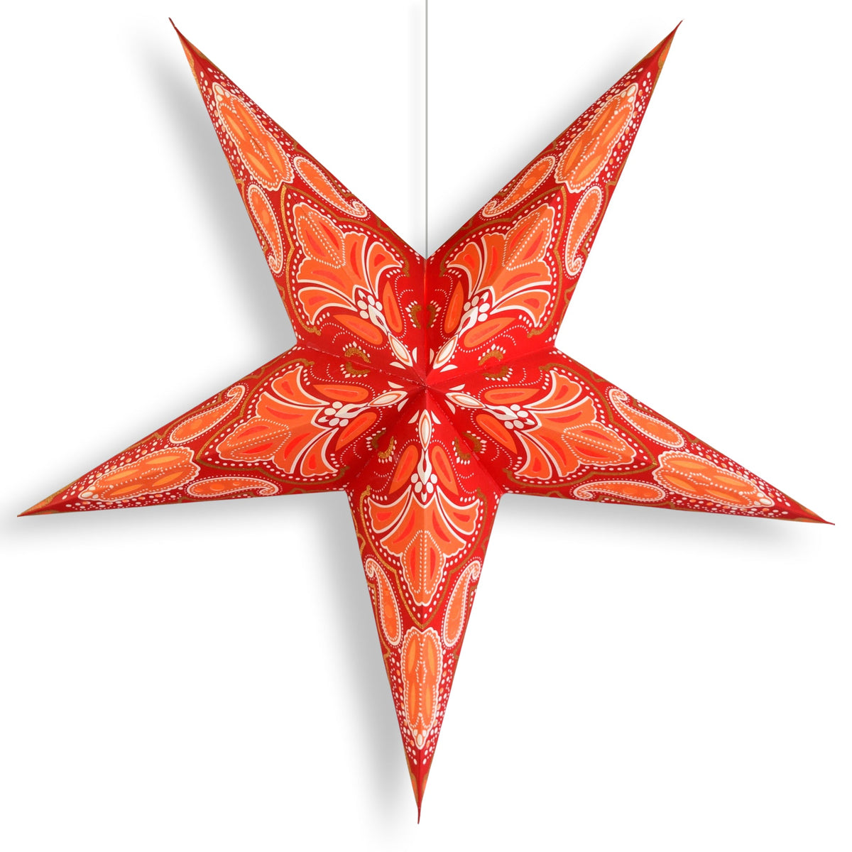 Luna Bazaar's hand-crafted hanging Paper Star Lanterns are beautiful as a home decor accessory or as an outdoor Wedding decoration. These star lantern lamps are high-quality - made from thick paper and punched with a special star design. Available in many colors and patterns, our unique star lanterns can be seen hung on the sets of many Hollywood movies and TV shows. Our stars will make a beautiful display or decoration in any room in the home. They add a fun touch to any party or event and you can pair with one of our lamp cord kits to create wonderful ambiance lighting.