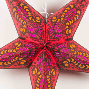 24 Inch Red Peacock Paper Star Lantern, Chinese Hanging Wedding & Party Decoration