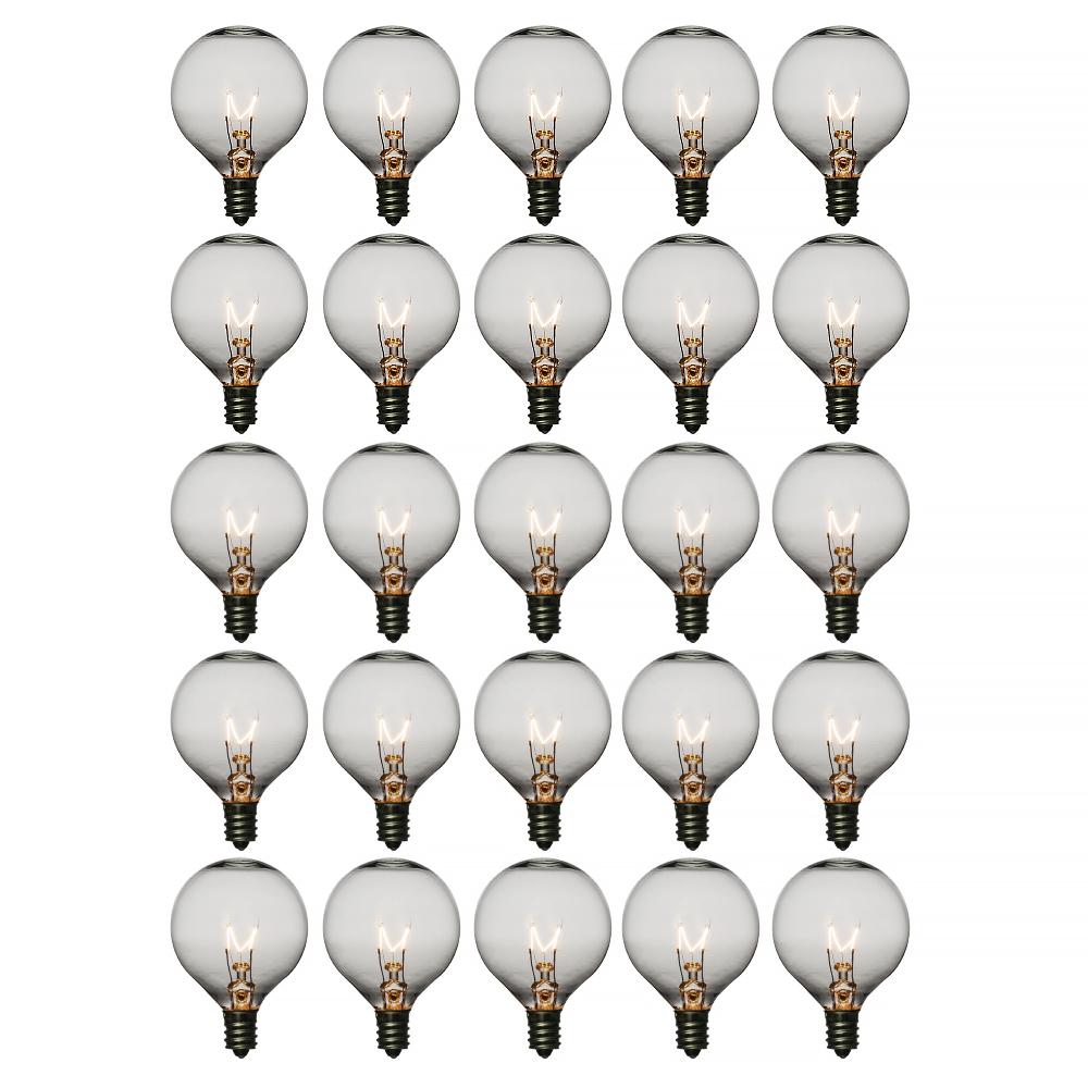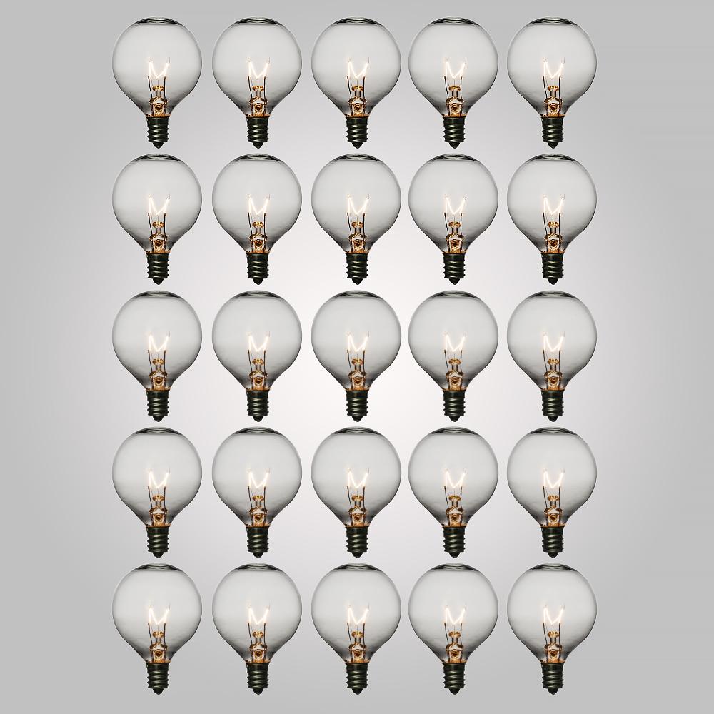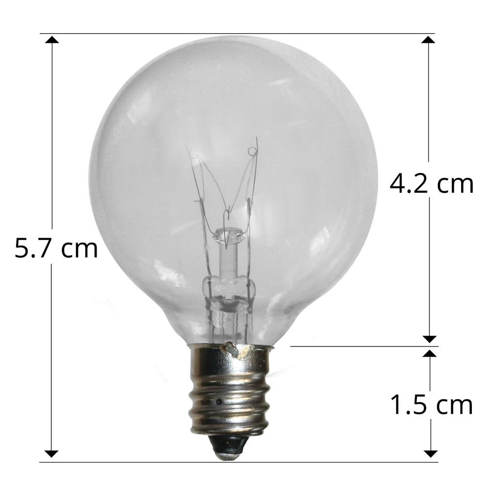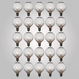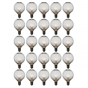 Every now and again, you'll need to replace a light bulb or two on your string lights. Some may accidentally get broken while others will burn out from repeated use. The LunaBazaar has you covered for all of your string light replacement bulb needs. These clear, 5-watt incandescent G40 globe light bulbs will fit in any set of string lights that feature a C7 socket type. They feature an E12 candelabra base and will specifically work with the 10-socket outdoor patio string light sets available from the LunaBazaar.