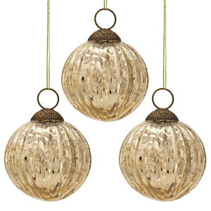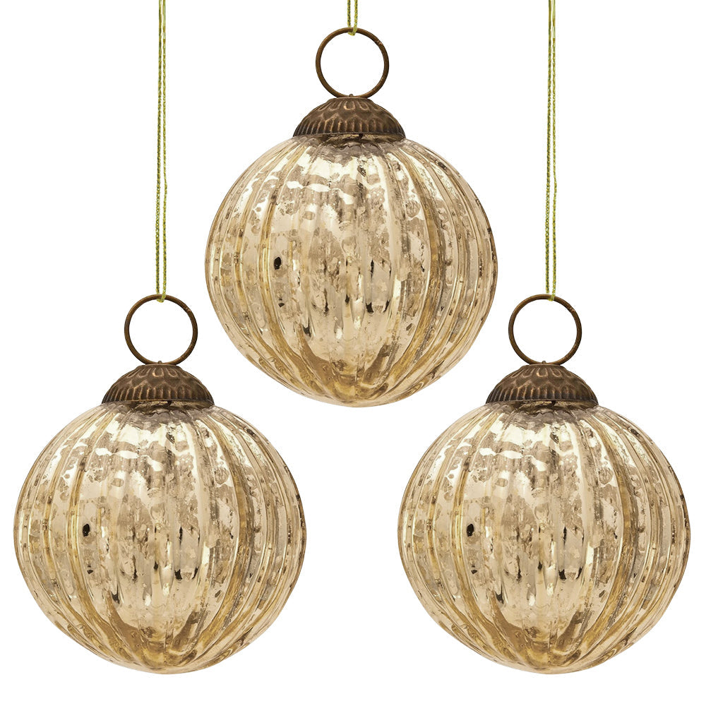 3-PACK SET. 3" Gold Mona Mercury Glass Lined Ball Ornament Christmas Decoration