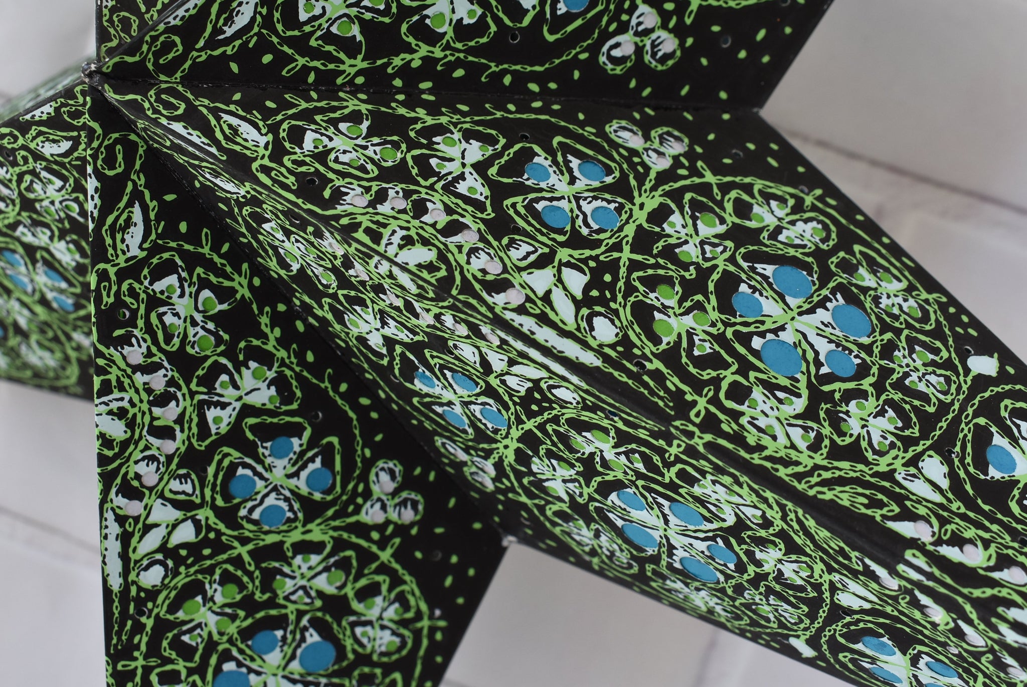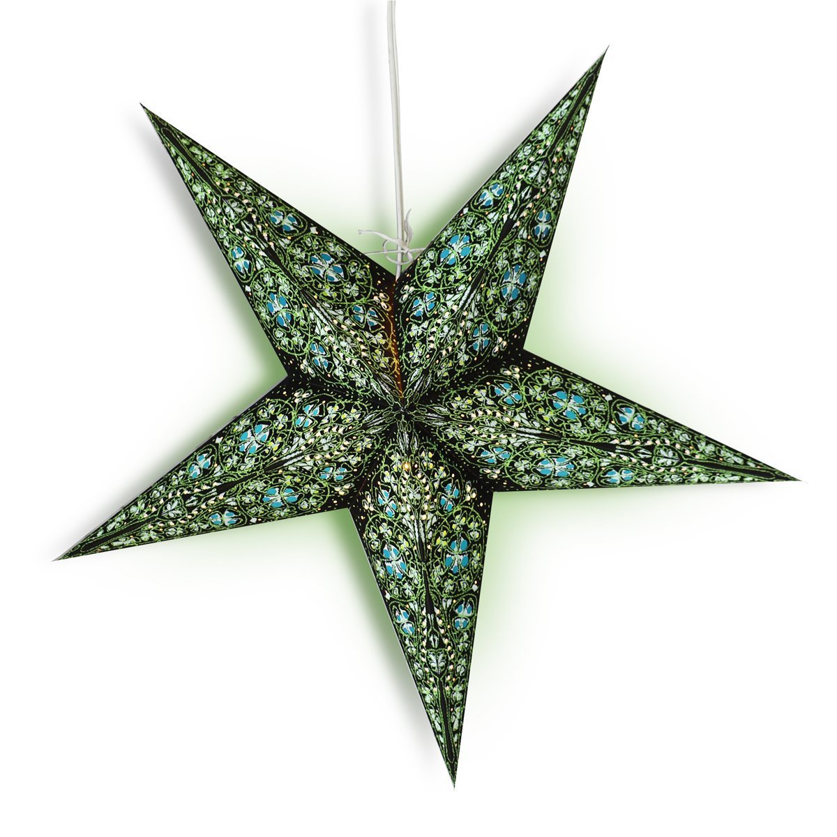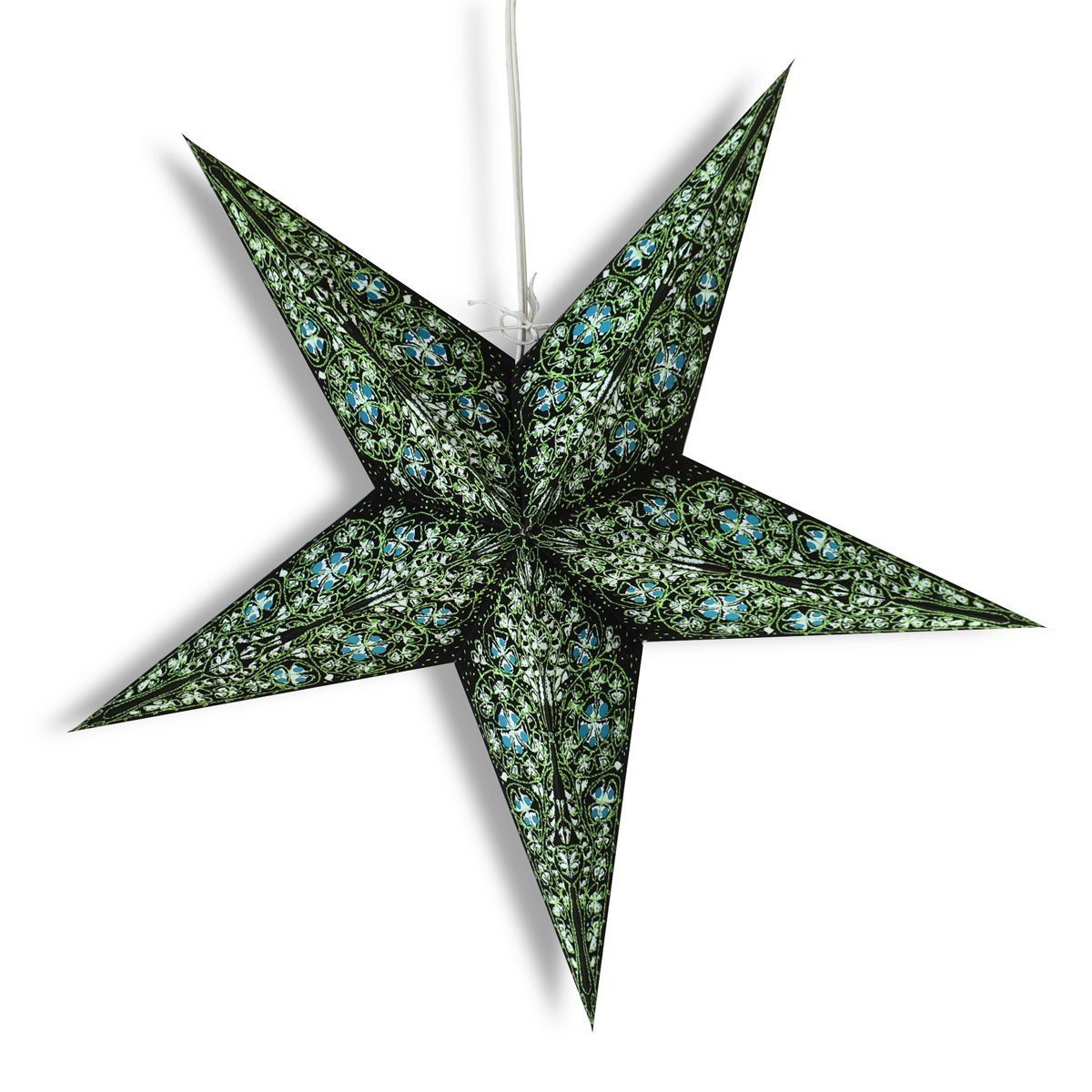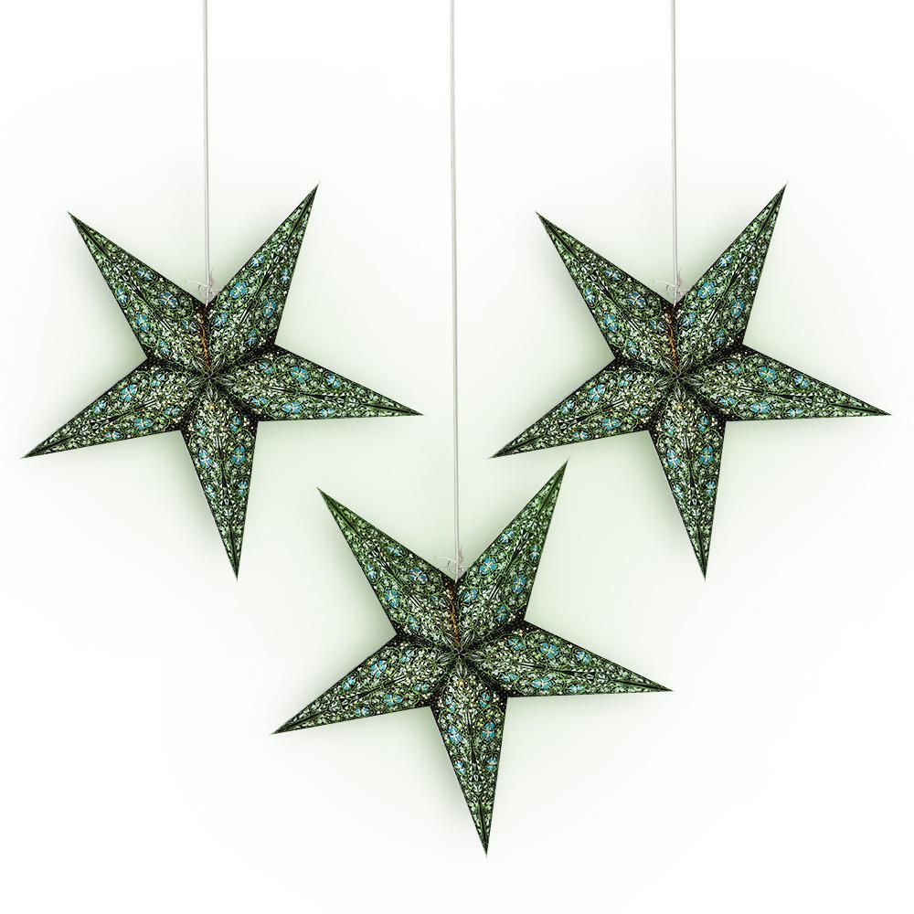 3-PACK 24 Inch Green / Black Garden Paper Star Lantern, with LED Bulbs and Lamp Cord Light Included