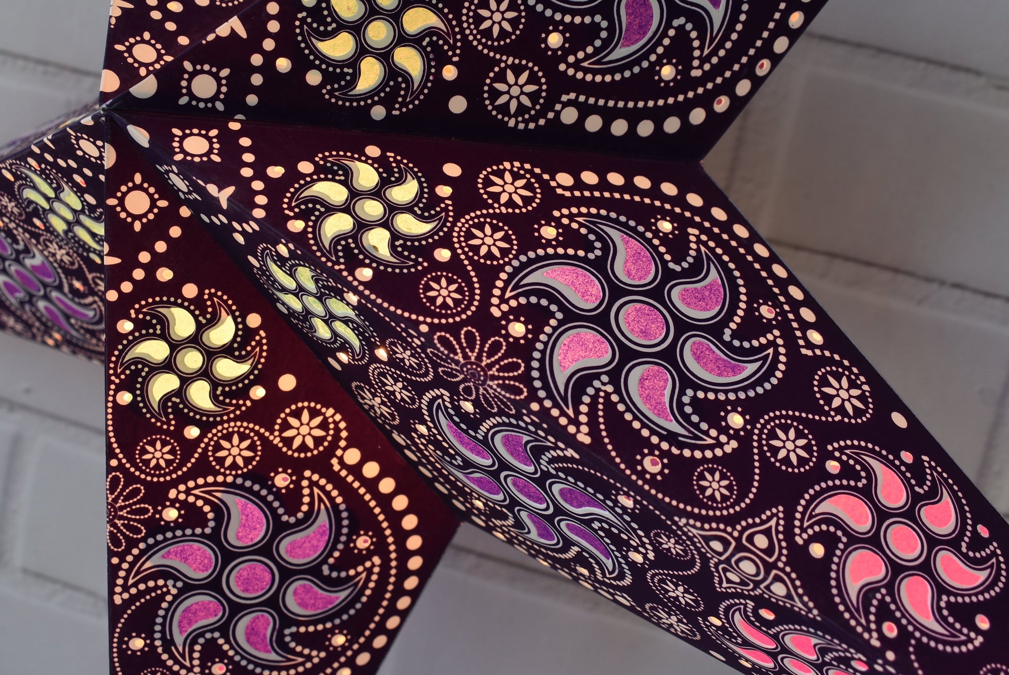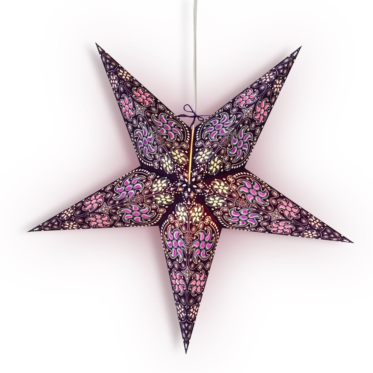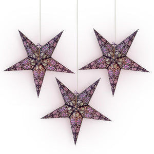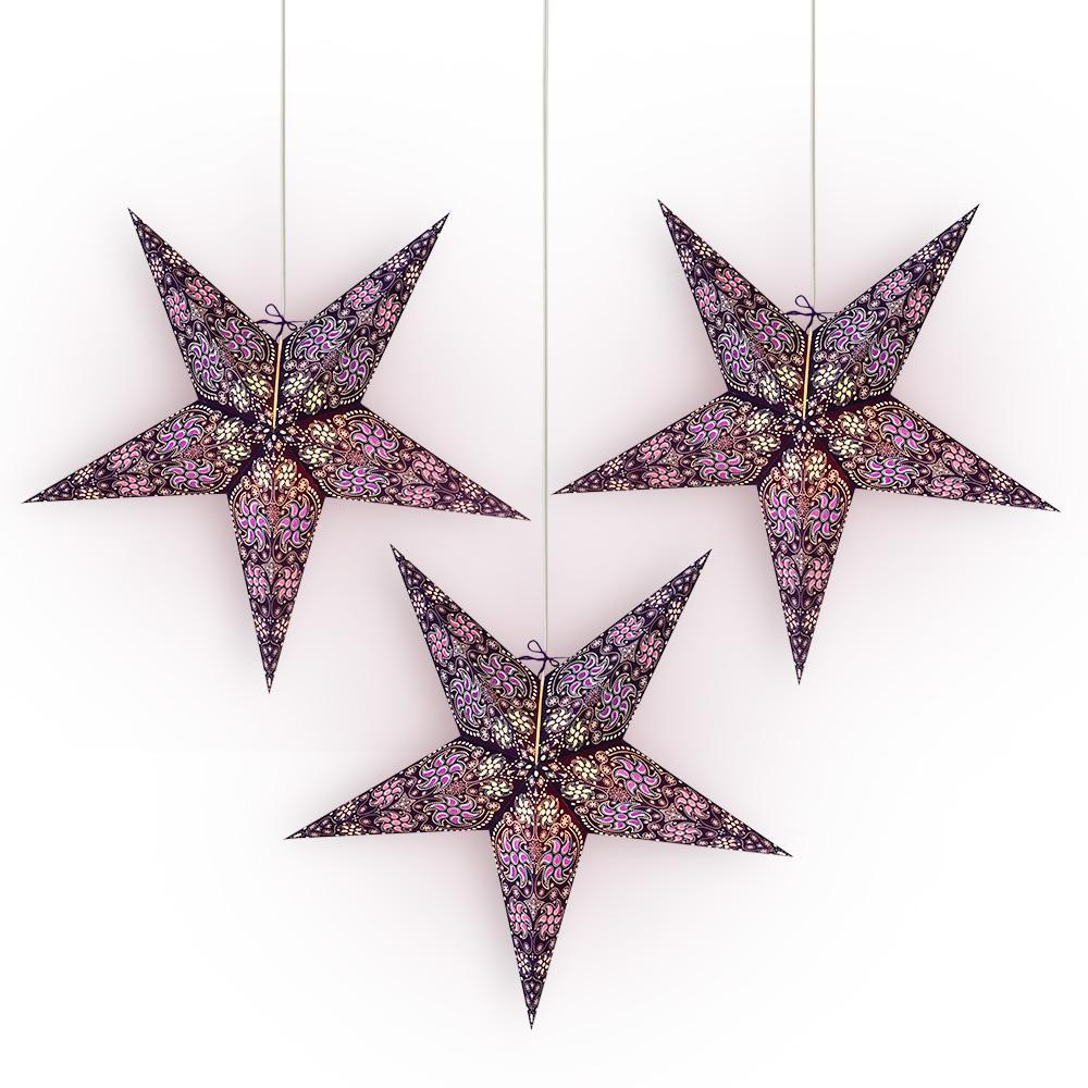 3-PACK 24 Inch Purple Winds Paper Star Lantern, with LED Bulbs and Lamp Cord Light Included