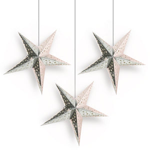 3-PACK Silver Starry Night 26" Illuminated Paper Star Lanterns Hanging Decorations