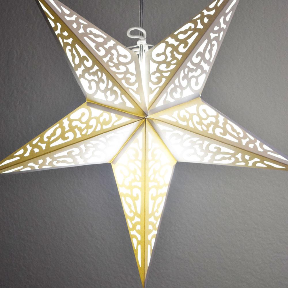 LunaBazaar's hand-crafted hanging Paper Star Lanterns are beautiful as a home decor accessory or as an outdoor Wedding decoration. These star lantern lamps are high-quality - made from thick paper and punched with a special star design. Available in many colors and patterns, our unique star lanterns can be seen hung on the sets of many Hollywood movies and TV shows. Makes a beautiful display or decoration in any room in the home. Adds a fun touch to any party or event. Pair with one of our Wedding Decorations. These star lantern lamps are high-quality - made from thick paper and punched with a special star design. Makes a beautiful display or decoration in any room in the home when paired with one of our lamp cord kits.