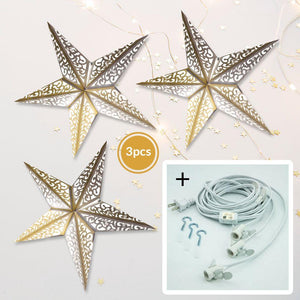3-PACK 24" White Liberty Illuminated Paper Star Lantern, with LED Bulbs and Lamp Cord Light Included
