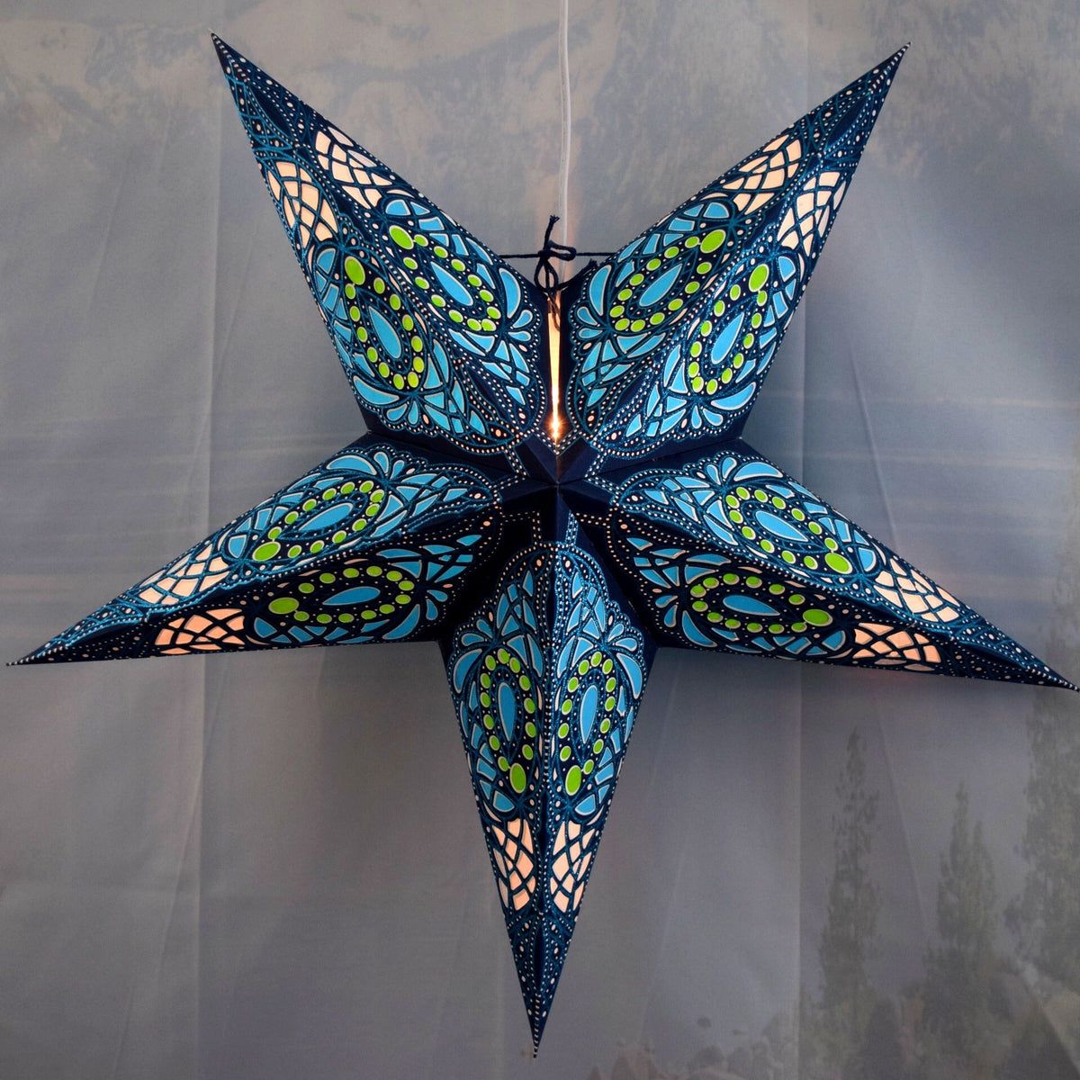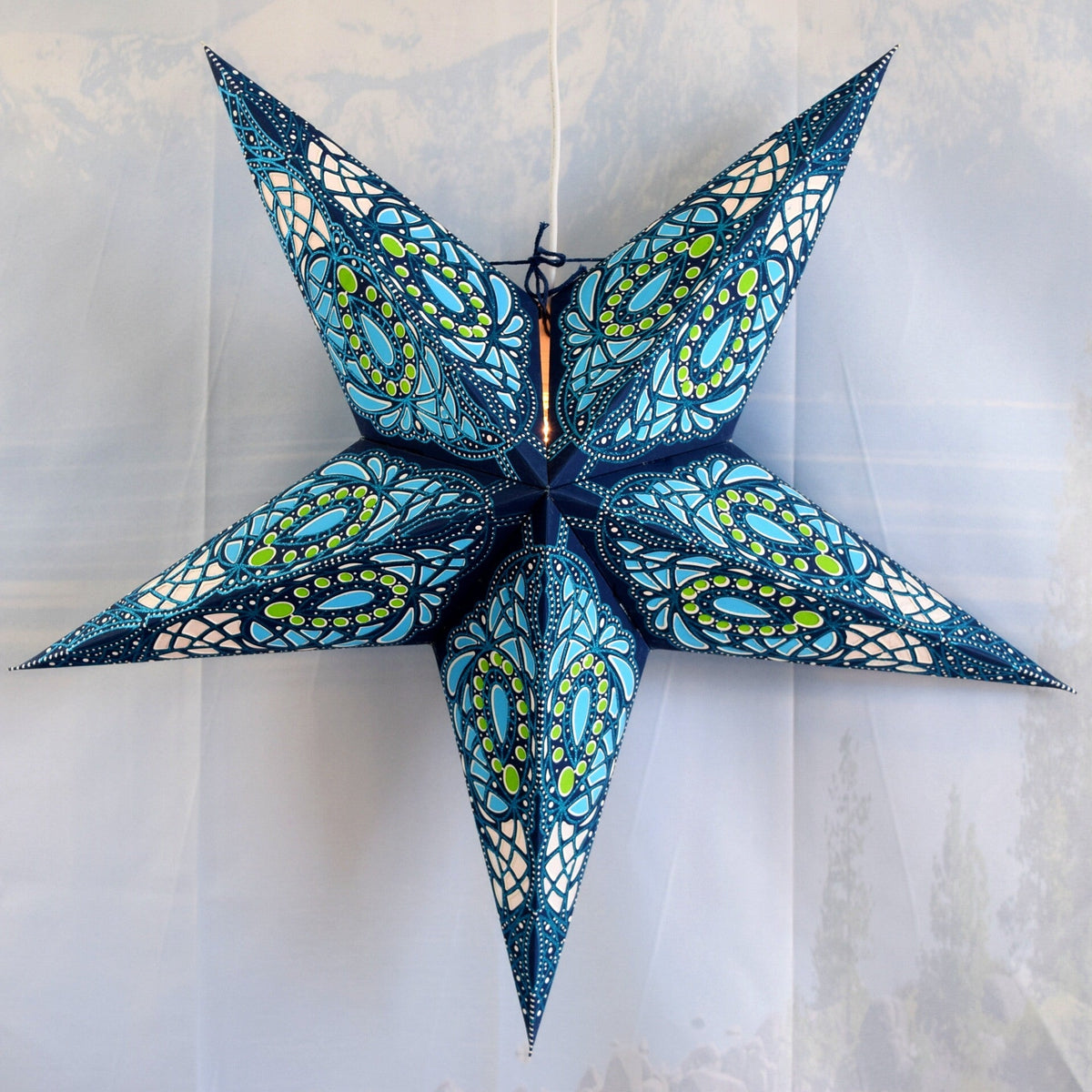 Introducing Luna Bazaar’s hand-crafted hanging Paper Star Lantern KIT, perfect for adding a unique and decorative touch to your home or event. Each kit includes a beautifully designed star lantern, a triple-socket pendant light cord, and 3x LED light bulbs, making it a complete lighting solution. These high-quality lanterns are crafted from thick paper and feature intricate, punched star designs. Whether for home décor or as a stunning centerpiece for weddings and parties, our star lanterns create a magical ambiance in any setting.