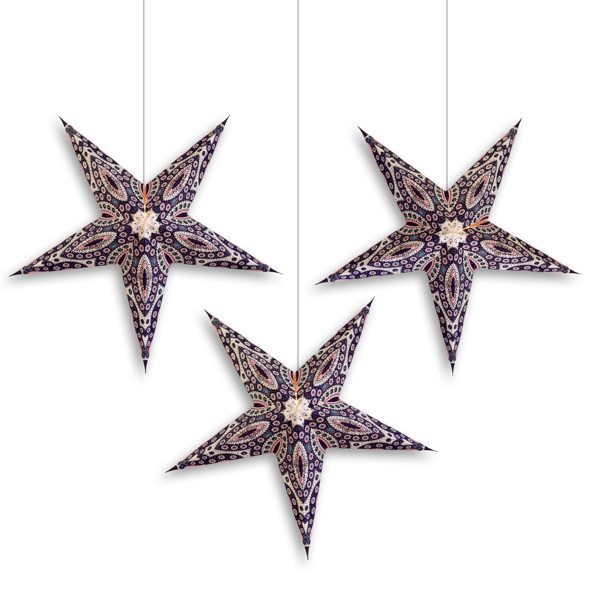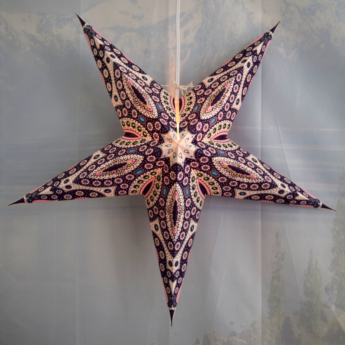 Introducing Luna Bazaar’s hand-crafted hanging Paper Star Lantern KIT, perfect for adding a unique and decorative touch to your home or event. Each kit includes a beautifully designed star lantern, a triple-socket pendant light cord, and 3x LED light bulbs, making it a complete lighting solution. These high-quality lanterns are crafted from thick paper and feature intricate, punched star designs. Whether for home décor or as a stunning centerpiece for weddings and parties, our star lanterns create a magical ambiance in any setting.