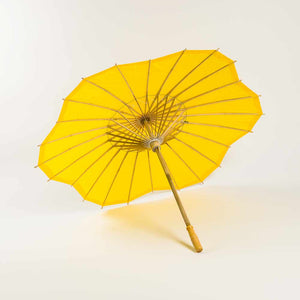 32" Yellow Paper Parasol Umbrella, Scallop Blossom Shaped with Elegant Handle
