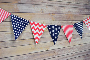 Celebrate July 4th with these decorative bunting banners in the United States of America's patriotic colors. Featuring a variety of red, white and blue combinations, this strand of 12 triangle pennants is a great addition to your outdoor BBQ or 4th of July festivities. Each design is printed on both side to emulates America's beautiful flag.