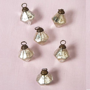 Our Vintage Christmas ornaments feature an antiqued Silver metallic finish. These faceted mercury glass diamond ornaments are exceptionally elegant and shimmery Christmas ornaments. Use for holiday decorating or any special occasion.