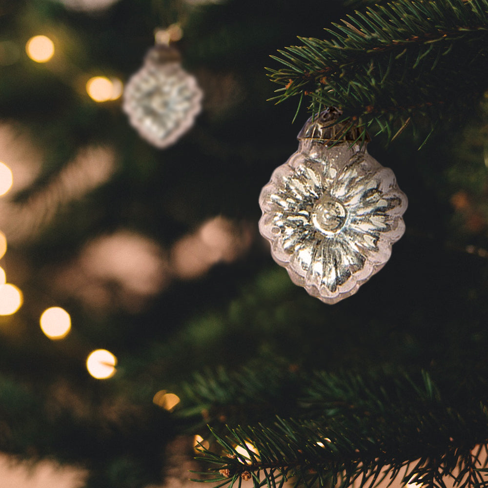 Our Vintage Christmas ornaments feature an antiqued Silver metallic finish. These faceted mercury glass unique heart ornaments are exceptionally elegant and shimmery Christmas ornaments. Use for holiday decorating or any special occasion.