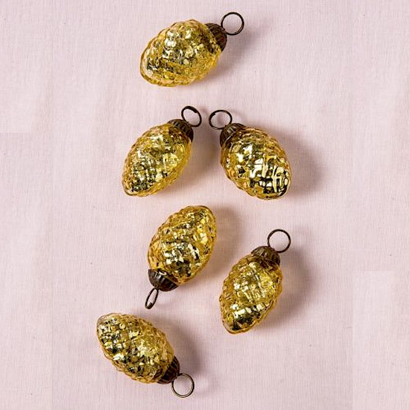 Our Vintage Christmas ornaments feature an antiqued Gold metallic finish. These faceted mercury glass pine cone ornaments are exceptionally elegant and shimmery Christmas ornaments. Use for holiday decorating or any special occasion.