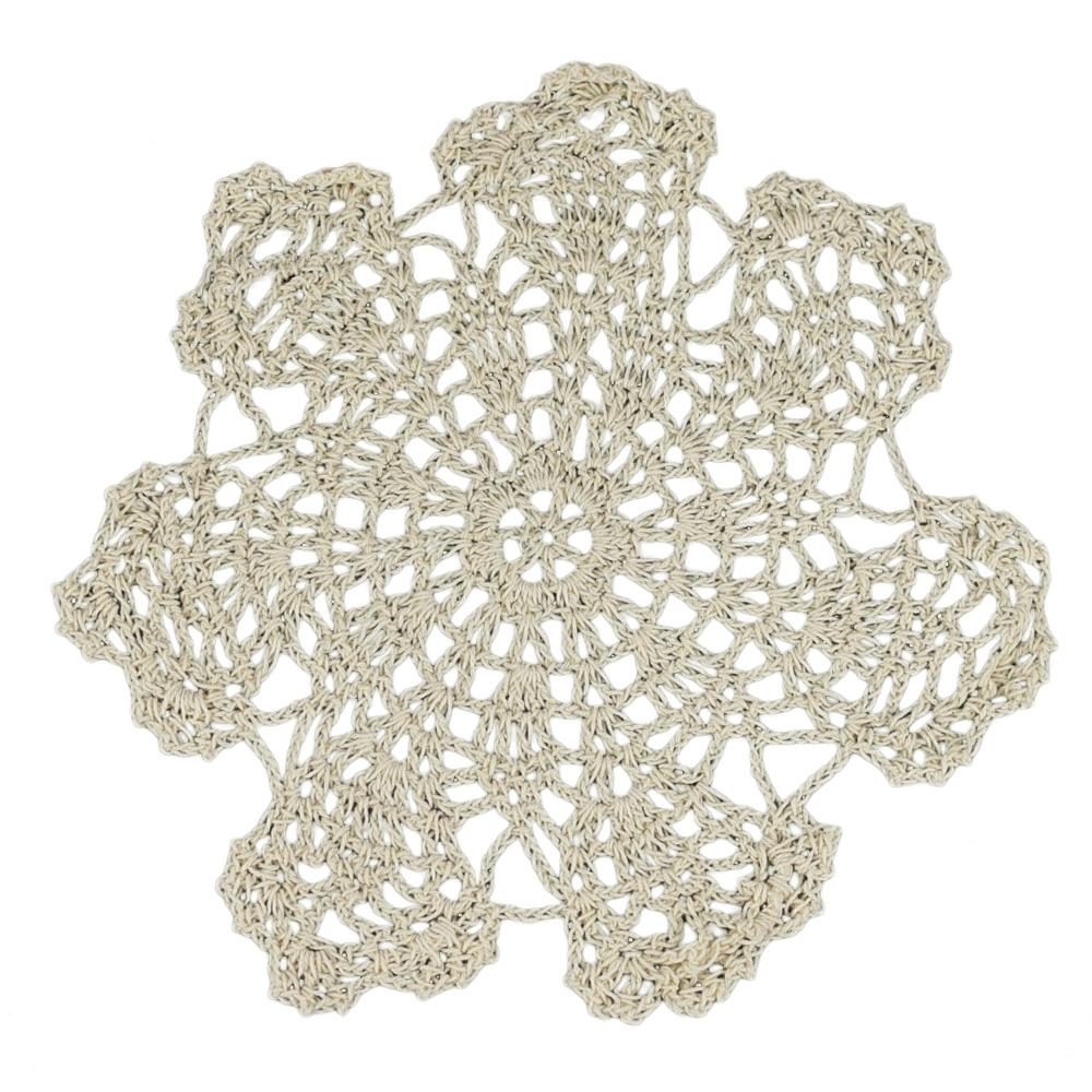 BLOWOUT 7" Bloom Shaped Crochet Lace Doilies Placemats, Handmade Cotton - Beige (2 PACK)