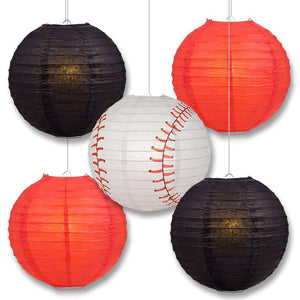 Dimensions of Lanterns: 1x 14" Baseball Lanterns + 4x 14" Team Color Round Lanterns.