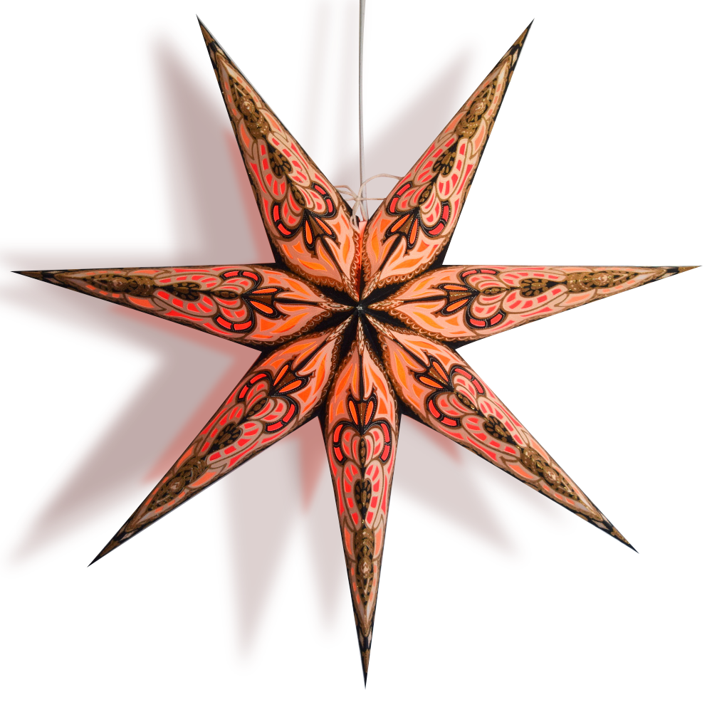 Luna Bazaar's hand-crafted hanging Paper Star Lanterns are beautiful as a home decor accessory or as an outdoor Wedding decoration. These star lantern lamps are high-quality - made from thick paper and punched with a special star design. Available in many colors and patterns, our unique star lanterns have been seen hung on walls and ceilings on TV shows, movies and at concerts. Makes a beautiful display or decoration in any room in the home. Adds a fun touch to any party or event. Pair with one of our Wedding Decorations. These star lantern lamps are high-quality - made from thick paper and punched with a special star design. Available in many colors and patterns, our unique star lanterns have been seen hung on walls and ceilings on TV shows, movies and at concerts. Makes a beautiful display or decoration in any room in the home when paired with one of our lamp cord kits.