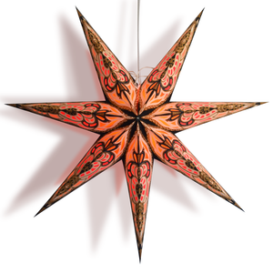 24" Black Orange Babylon Glitter 7-Point Paper Star Lantern, Hanging Wedding & Party Decoration