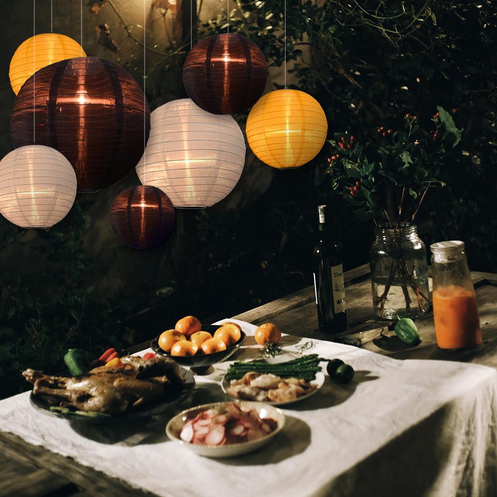 LunaBazaar hand-crafts our own Nylon Lanterns, so we can assure you our products are of the best quality. We offer over 1600 different combinations of colors and styles with White Paper Lanterns being the most popular. Mix-and-match different sizes ranging from 4" all the way to giant 42" xl paper lanterns to match your Rustic Chic, Barn, American, Chinese, Japanese, Vietnamese, and Indian Wedding themes or your kid's room, Baby Room or Nursery. Nylon Lanterns can be hung on our outdoor Commercial String Lights, Lamp Cord Kits, C7 and C9 Globe String Lights and matched to Holiday or Table Decor. Also shop our Lights for Nylon Lanterns.