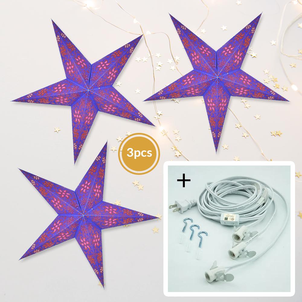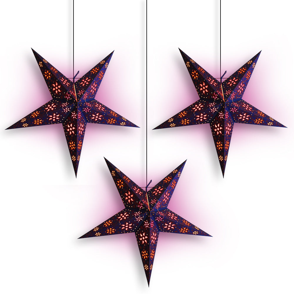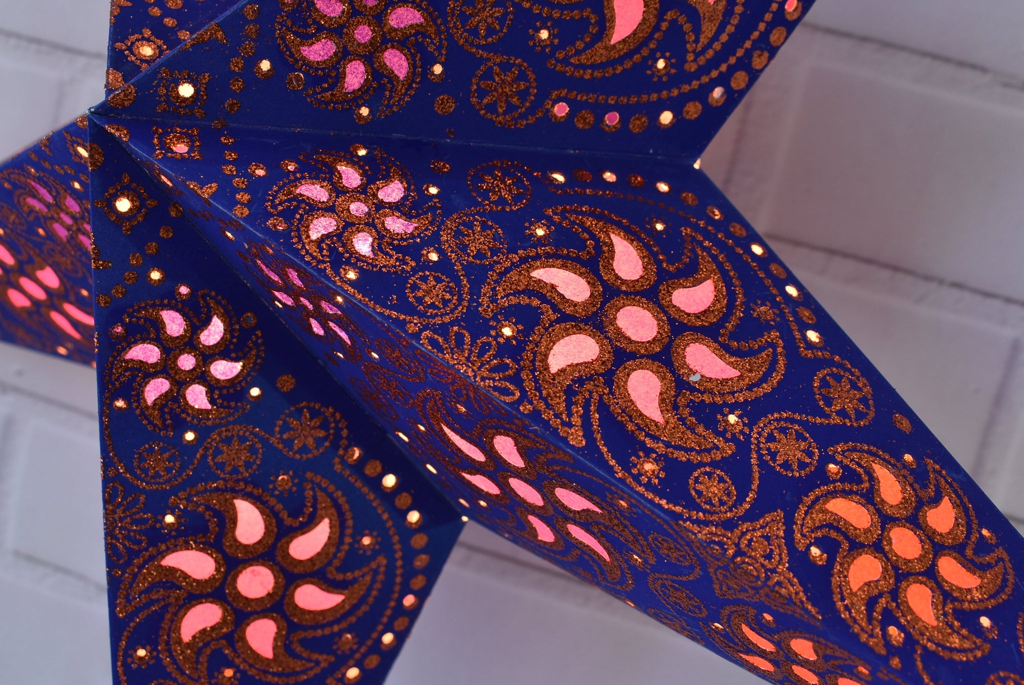 LunaBazaar's hand-crafted hanging Paper Star Lanterns are beautiful as a home decor accessory or as an outdoor Wedding decoration. These star lantern lamps are high-quality - made from thick paper and punched with a special star design. Available in many colors and patterns, our unique star lanterns can be seen hung on the sets of many Hollywood movies and TV shows. Our stars come from direct from India and will make a beautiful display or decoration in any room in the home. They add a fun touch to any party or event and you can pair with one of our lamp cord kits to create wonderful ambiance lighting.