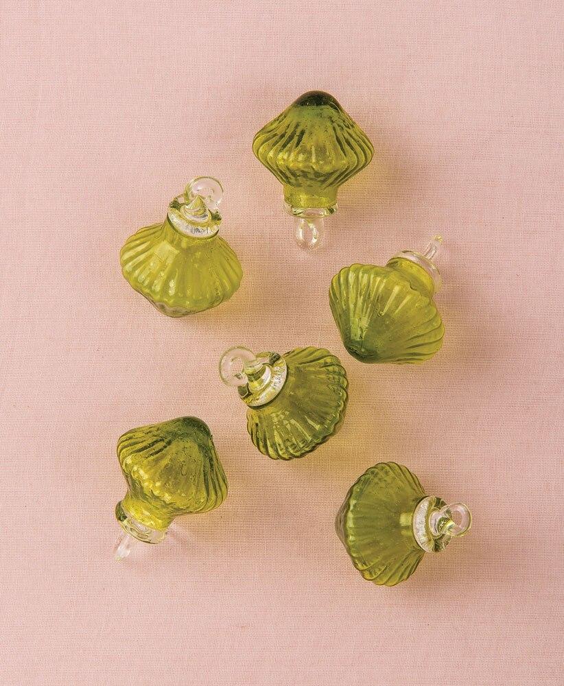 Bottle Green Iris Mini Recycled Glass Bulb Ornament Set of 6