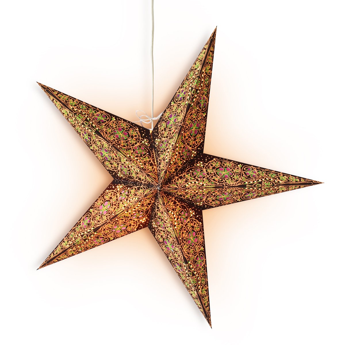 Luna Bazaar's hand-crafted hanging Paper Star Lanterns are beautiful as a home decor accessory or as an outdoor Wedding decoration. These star lantern lamps are high-quality - made from thick paper and punched with a special star design. Available in many colors and patterns, our unique star lanterns have been seen hung on walls and ceilings on TV shows, movies and at concerts. Makes a beautiful display or decoration in any room in the home. Adds a fun touch to any party or event. Pair with one of our Wedding Decorations. These star lantern lamps are high-quality - made from thick paper and punched with a special star design. Available in many colors and patterns, our unique star lanterns have been seen hung on walls and ceilings on TV shows, movies and at concerts. Makes a beautiful display or decoration in any room in the home when paired with one of our lamp cord kits.