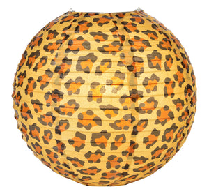 Decorative Round Paper lantern with a Cheetah animal print. Paper lantern is held open with a wire expander.
