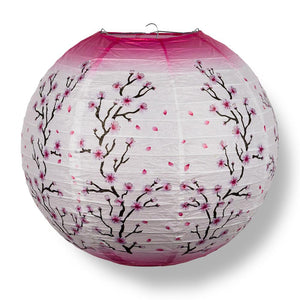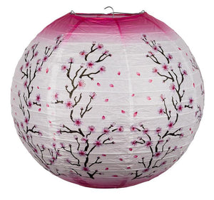 Our new Pink Cherry Blossom Print Paper Lanterns are adorned with colorful blooming branches which represent the cycle of life in traditional Japanese culture. These new artisan Japanese lanterns are a great alternative to solid color paper lanterns and are designed to show off the unique style your guests love about you! Able to be hung anywhere, these hanging decorations are a beautiful and fun way to dress up any Wedding Reception, Birthday Party, Baby Shower or any Special Event space.