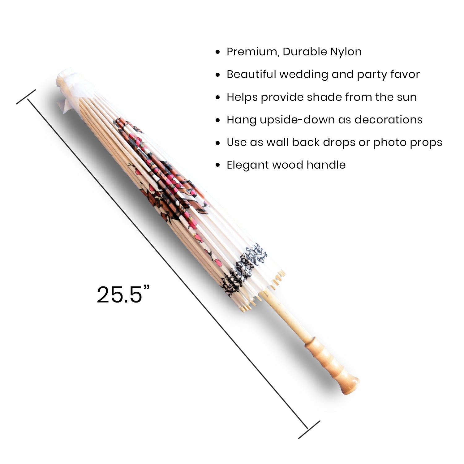Nylon Parasols also known as Nylon or Paper Umbrellas aren't just great to help block the sun and provide your guests with needed shade but also offer a beautiful and fun way to dress up any