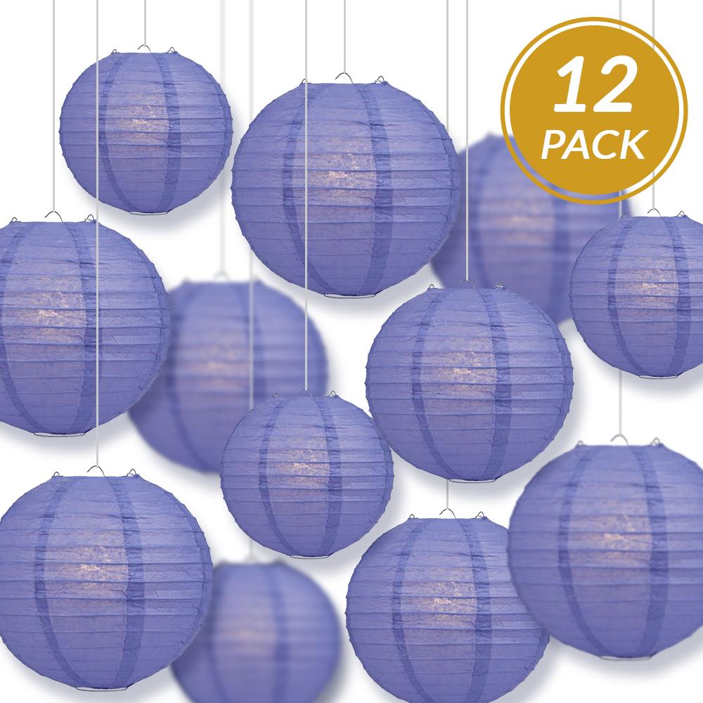 Our convenient Astra Blue / Very Periwinkle Paper Lantern Party Packs like this large 12-piece assortment includes a combination of different-sized Chinese Paper Lanterns perfect for birthday parties, White Paper Lanterns being the most popular. Mix-and-match different sizes ranging from 4" all the way to giant 42" xl paper lanterns to match your Rustic Chic, Classical, Vintage or Barn theme. Paper Lanterns can be hung on our outdoor Style: Parallel Ribbing