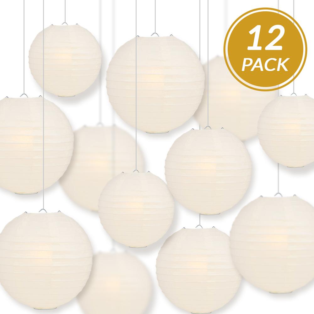 Our convenient Beige Paper Lantern Party Packs like this large 12-piece assortment includes a combination of different-sized Chinese Paper Lanterns perfect for birthday parties, White Paper Lanterns being the most popular. Mix-and-match different sizes ranging from 4" all the way to giant 42" xl paper lanterns to match your Rustic Chic, Classical, Vintage or Barn theme. Paper Lanterns can be hung on our outdoor Style: Parallel Ribbing