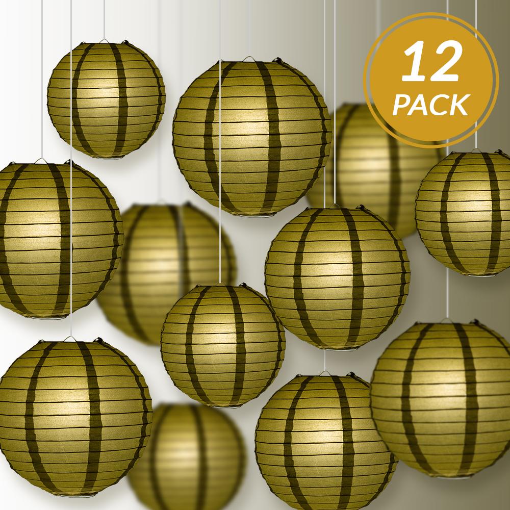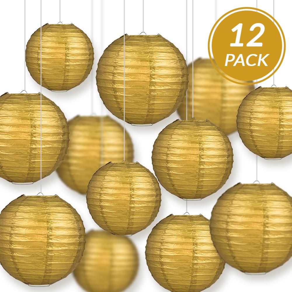 Our convenient Gold Paper Lantern Party Packs feature a 12-piece assortment of different sizes in a lovely Gold Chinese Paper Lanterns. Perfect for birthday parties, Weddings and baby showers, string these paper lanterns up on Patio String Lights to create an awe-inspiring hanging decoration your guests will talk about for years! Our traditional Chinese lanterns can also be clustered for that eye-catching look or placed in and around the home for budget friendly DIY lighting.