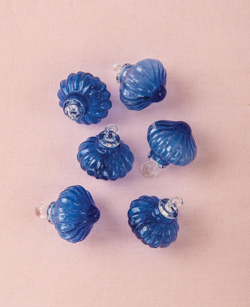 Cobalt Blue Lucy Mini Recycled Glass Bulb Ornament Set of 6