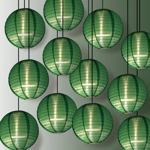 These parallel ribbing Dark Emerald Green Silk Nylon Lanterns are weather-resistant and suitable for use as outdoor decorations. Our outdoor lanterns can be used with our battery-operated LED lights as well as our light cord kits. They can also be used on most ceiling fixtures and pendant lights.