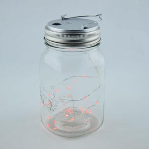 CLOSEOUT Fantado Wide Mouth Clear Mason Jar Light w/ Hanging Red Fairy LED Kit