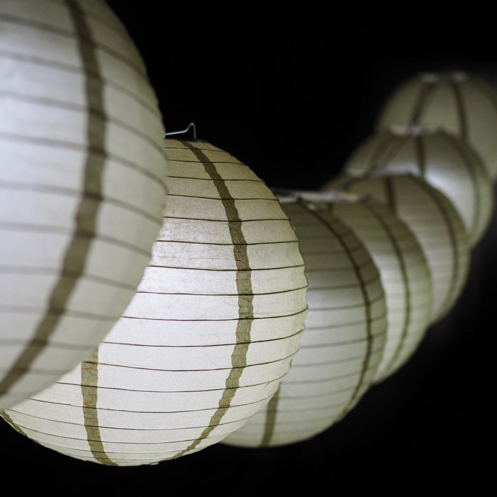 White Paper Lanterns being the most popular. Mix-and-match different sizes ranging from 4" all the way to giant 42" xl paper lanterns to match your Rustic Chic, Barn, American, Chinese, Japanese, Vietnamese, and Indian Wedding themes or your kid's room, Baby Room or Nursery. Paper Lanterns can be hung on our outdoor