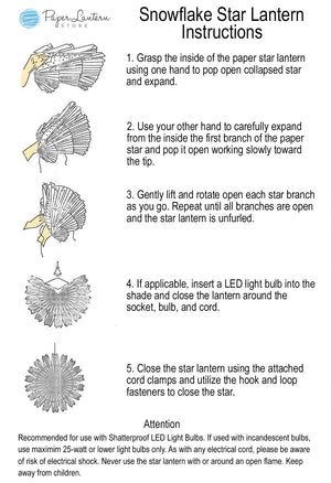 ![]() | Need lighting? We have unique E12 Socket Single and Multi-Lamp Cord Kits that can be used to hang and beautifully illuminate this Paper Star Lantern. |