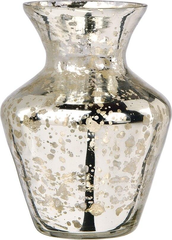 Vintage Mercury Glass Vase (4-Inch, Penelope Mini Urn Design, Silver) - Decorative Flower Vase - For Home Decor, Party Decorations, and Wedding Centerpieces