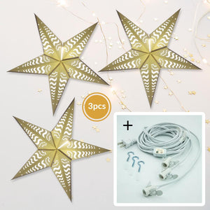 3-PACK White Tidal Waves Cut-Out 24 Inch Illuminated Paper Star Lantern, with LED Bulbs and Lamp Cord Light Included